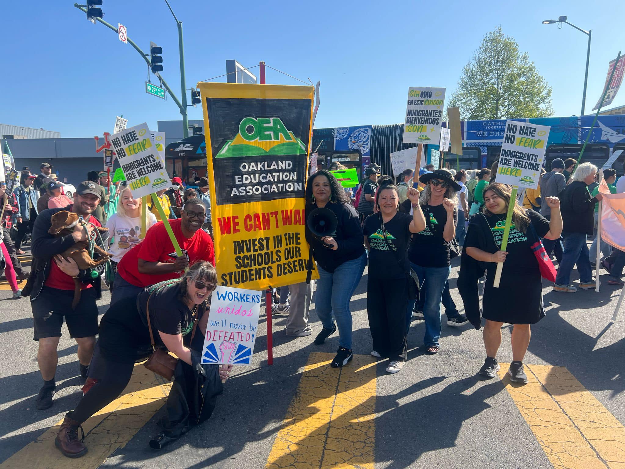 In Washington, D.C., a May Day march swept past NEA headquarters, where educators from across the U.S. waited and joined in. It culminated in a park across from the White House, where participants heard from U.S. Sen. Mazie Hirono, of Hawaii, and U.S. Reps. Ilyan Omar, of Minn., and Pramila Jayapal, of Wash. They also heard from Jennifer Vasquez, the wife of Kilmar Abrego García, the Maryland man mistakenly deported by the Trump administration, currently held in a deadly El Salvadoran prison.