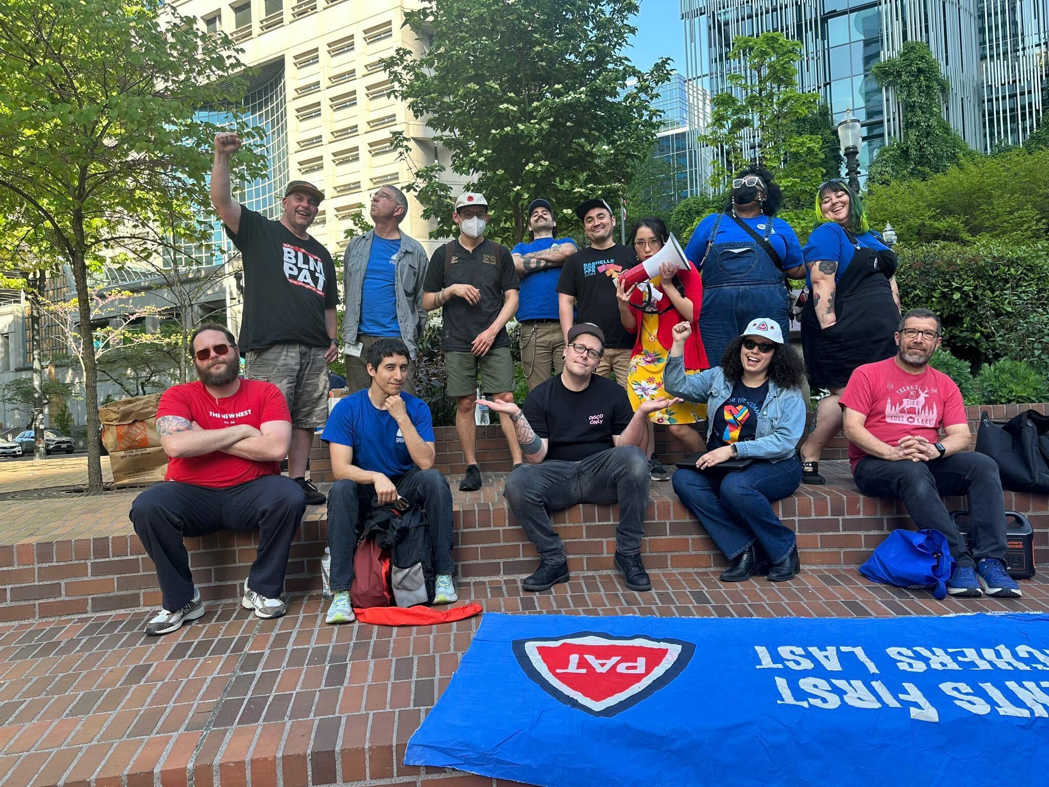 Members of the Portland Association of Teachers (PAT) rallied on May Day. That's PAT President Angela Bonilla in the back row, second from the right.