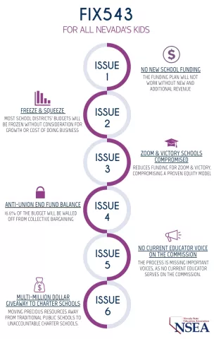 Ever since the introduction of SB543 five years ago, NSEA has expressed policy concerns at every opportunity—the lack of educator voice; no new revenue; watering down Zoom and Victory schools; freezing and squeezing school district budgets; a giveaway to charter schools; and undoing the rules of collective bargaining (read below for more detail)